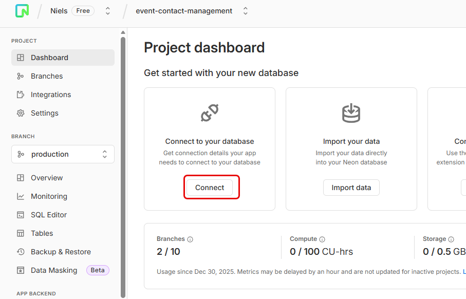 - Set up your own Neon database (free tier)