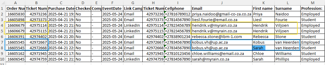 - Export registration CSV from Quicket (ticketing platform)