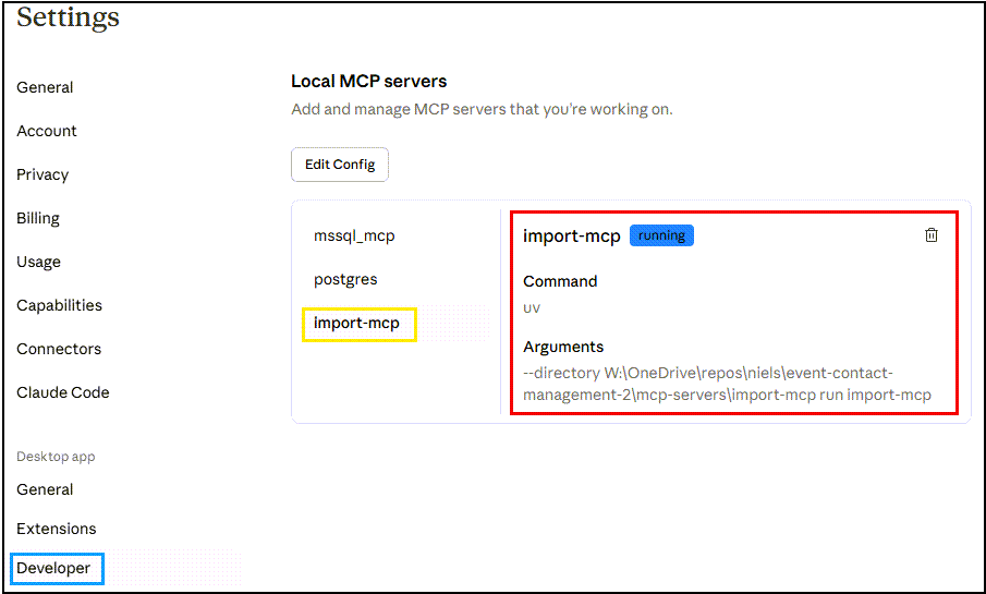 - Import MCP Server successfully configured