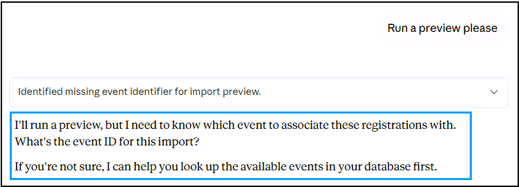 - ✅ The experience of typing “Import the March 2025 registrations” and watching it happen